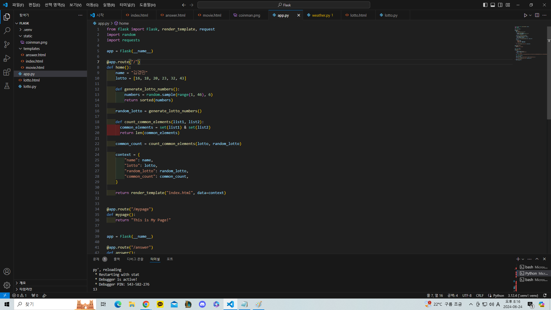 Flask 공부를 시작할 때 부터 머리가 굉장히 혼란스러웠다.가상환경 만들기부터 조금씩 아파오기 시작하더니 Flask를 이용한 로또 만들기에서 멘탈이 무너져 내리는 느낌이 왔다.