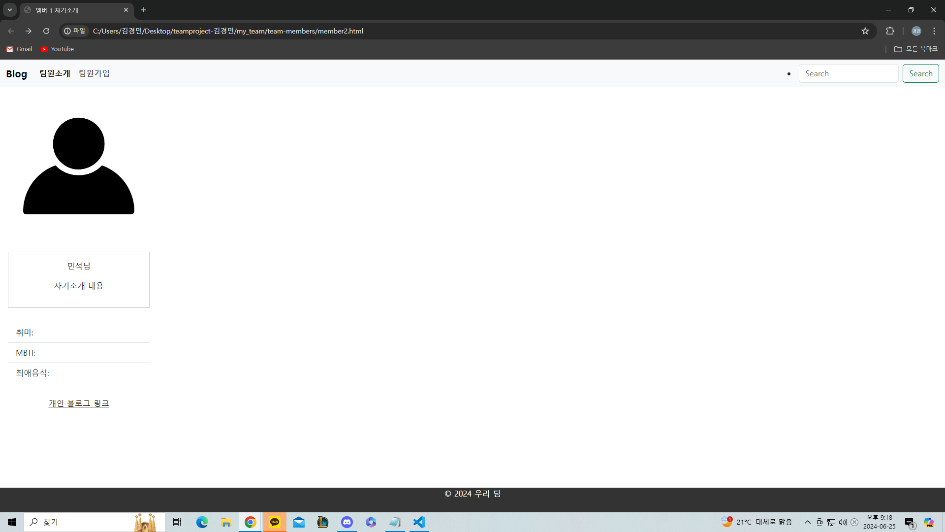 각 팀원의 상세페이지의 템플릿을 고정해서 추가/수정이 용이하도록 구성하자.