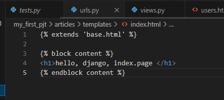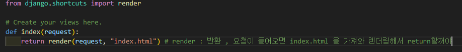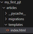 이후 내가 생성한 앱에서 templates폴더를 만들고 index.html 파일 생성