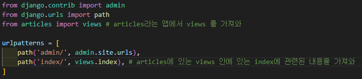 urls.py 에 위에 내용처럼 코드 입력