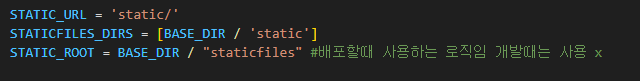 collectstatic(배포가 아닐때는 사용하지 않는다.)
