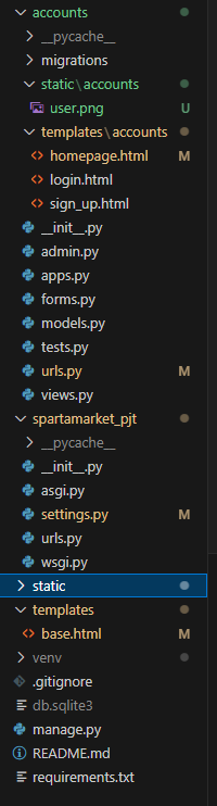 개발 단계에서는 app/static 경로 및 settings의 STATICFILES_DIRS 에 정의된 경로 참조