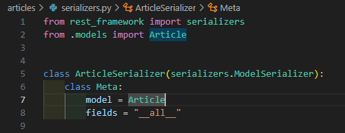 새로 serializers.py 를 생성하고 위의 내용 삽입