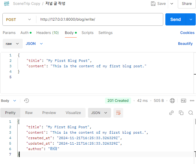 author = serializers.ReadOnlyField(source="author.username") # 글 작성자 nickname