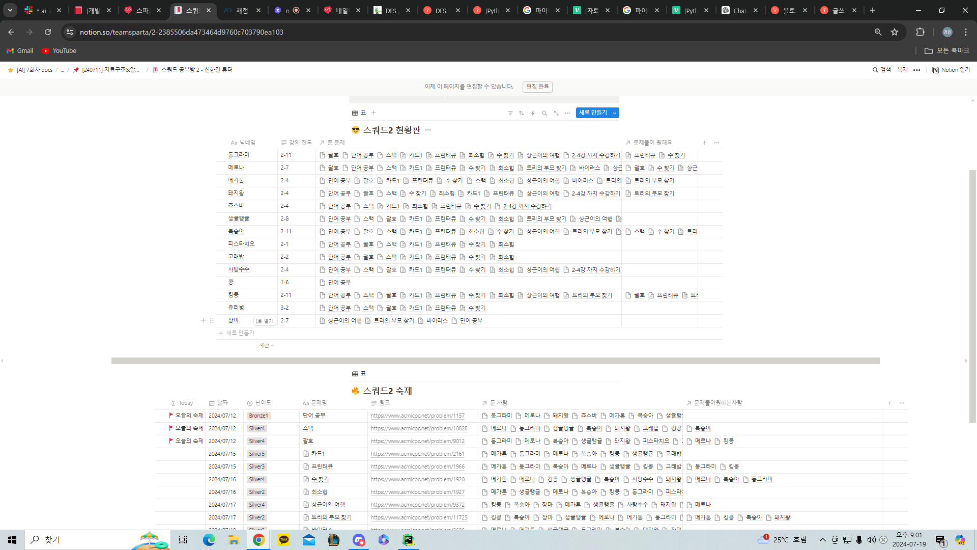 이번주 스쿼드를 하면서 한 숙제들이다. 솔직히 지금 다시 풀라 하면 아직 막 내손으로 완벽하게는 코드를 만들지는 못한다. 그래도 이번주 꽤나 알차게 보냈다. 알고리즘에 들어가서 머리도 아프고 이해도 안가는 것 투성이였고, 집중도 잘 안 됬다.